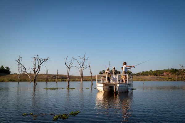 Set against a backdrop of vast waters and distant hills, anglers can try their hand at catching bream, catfish, or the legendary tigerfish — renowned for its strength and fight.