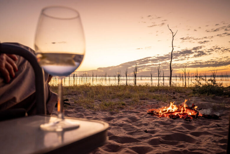 SIP a DRINK on the SAND as the SKY GLOWS and the LAKE MIRROS AFRICA'S COLOURS.